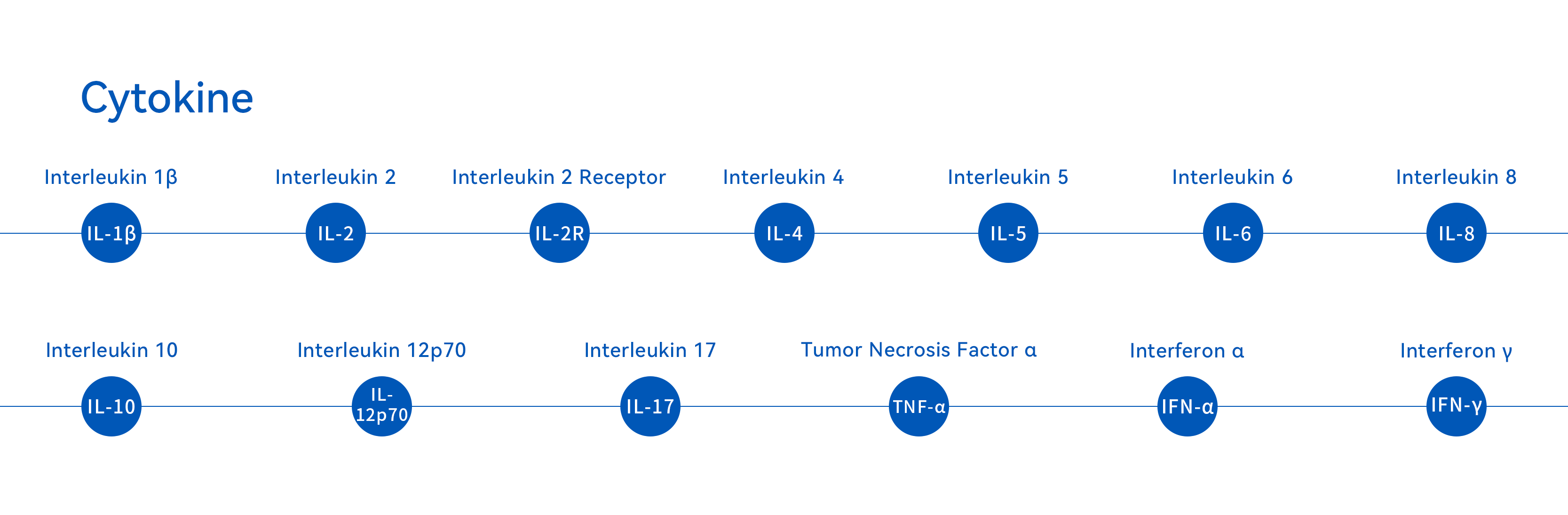 Cytokines are involved in a variety of diseases, including but not limited to inflammatory/infectious diseases, malignant blood diseases, COVID-19, autoimmune diseases, coronary heart disease, tumors, anti-tumor immunity and transplant rejection, metabolic diseases, etc., which can be applied to multiple departments, such as ICU, infection department, dermatology department, rheumatic immune department, digestive department, respiratory department, allergy department, etc.